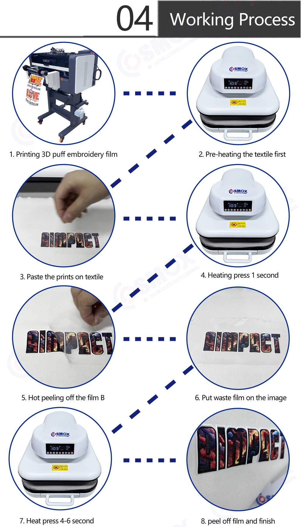 🌋 Adjustable Height Control: Proprietary thermo-expanding inks create 0.3-5mm embossing (adjustable per layer) for tactile puff, silicone, or hybrid effects.