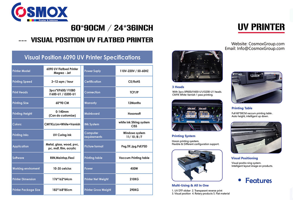 6090 Flatbed UV Printer with visual positioning CCD camara